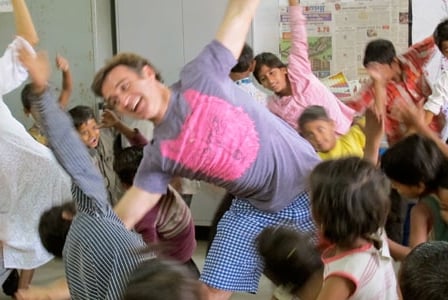 Celebrated yogi and self-proclaimed “Blissologist” Eoin Finn along with his wife and fellow “Bliss” promoter, Insiya Rasiwala-Finn, have taken on a project to inspire children of construction workers in India by teaching them yoga for the Mumbai Mobile Cretches charity.